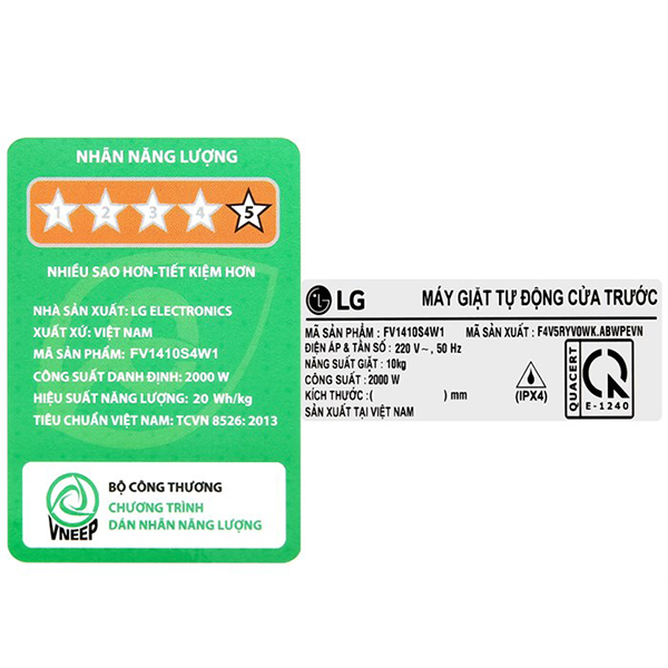 | Kết nối thông minh | Wi‑Fi, hỗ trợ app LG ThinQ (chẩn đoán lỗi, download chu trình) |