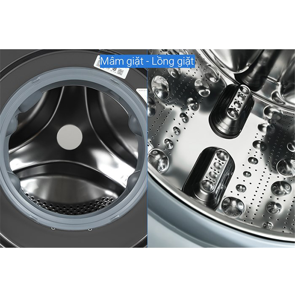 Công nghệ giặt hơi nước Steam: hơi nước ở nhiệt độ cao len lỏi vào sâu trong sợi vải, đánh bay các vết bẩn cứng đầu bám trên mặt vải, tiêu diệt vi khuẩn, các chất gây dị ứng, giúp đảm bảo an toàn cho sức khỏe của cả gia đình và hỗ trợ giảm nhăn cho quần áo. Công nghệ AI DD: với trí tuệ nhân tạo Al phát hiện khối lượng, cảm nhận được độ mềm của từng loại vải và tự động lựa chọn những chuyển động tối ưu cho vải. Từ đó giúp xử lý công việc giặt giũ hiệu quả, chăm sóc quần áo thông minh, bảo vệ sợi vải đến 18%.
