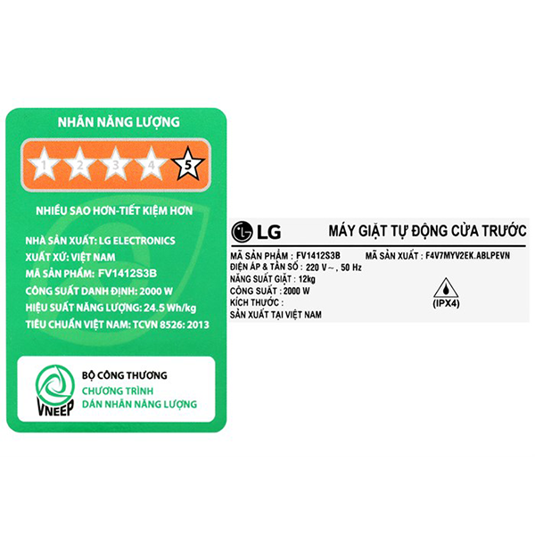 | Tiện ích | Thêm đồ khi giặt, Khóa trẻ em, Hẹn giờ giặt, Chẩn đoán lỗi Smart Diagnosis, Tự khởi động lại, Điều khiển qua LG ThinQ |