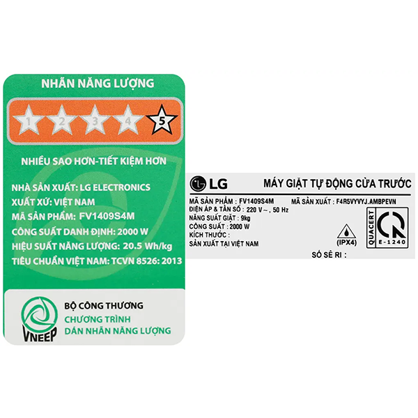 | Khối lượng giặt | 9 kg – phù hợp gia đình trên 6 người |