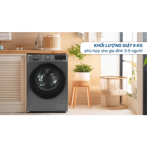 Máy giặt LG này với khả năng giặt giũ lên đến 9 kg, phù hợp với gia đình từ 3 – 5 người. Trang bị 14 chương trình giặt, đáp ứng tốt cho nhiều nhu cầu giặt giũ khác nhau, giúp giặt sạch và bảo vệ tốt cho chất liệu. Cụ thể là: chu trình tải về, vải bông, vải bông +, giặt đồ hơi nước trẻ em, ngừa dị ứng, giặt nhanh 14 phút, giặt nhẹ, giặt êm, vệ sinh lồng giặt, đồ hỗn hợp, thể thao, tinh xảo, giặt ga giường.