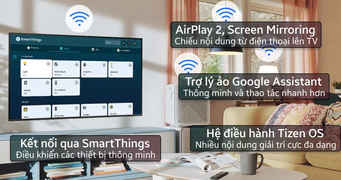 Màn hình 55″ Crystal UHD 4K với chip Crystal 4K, HDR10+ và Motion Xcelerator mang đến hình ảnh chân thực từng khung hình, sắc nét như đang ngồi giữa rạp chiếu.Âm thanh sống động 20 W qua OTS Lite và Q‑Symphony phối hợp hoàn hảo với hệ điều hành Tizen, biến phòng khách thành trung tâm giải trí thông minh và đầy cảm hứng. Điện Máy Trường Phú là nơi bạn có thể tin tưởng và đồng hành